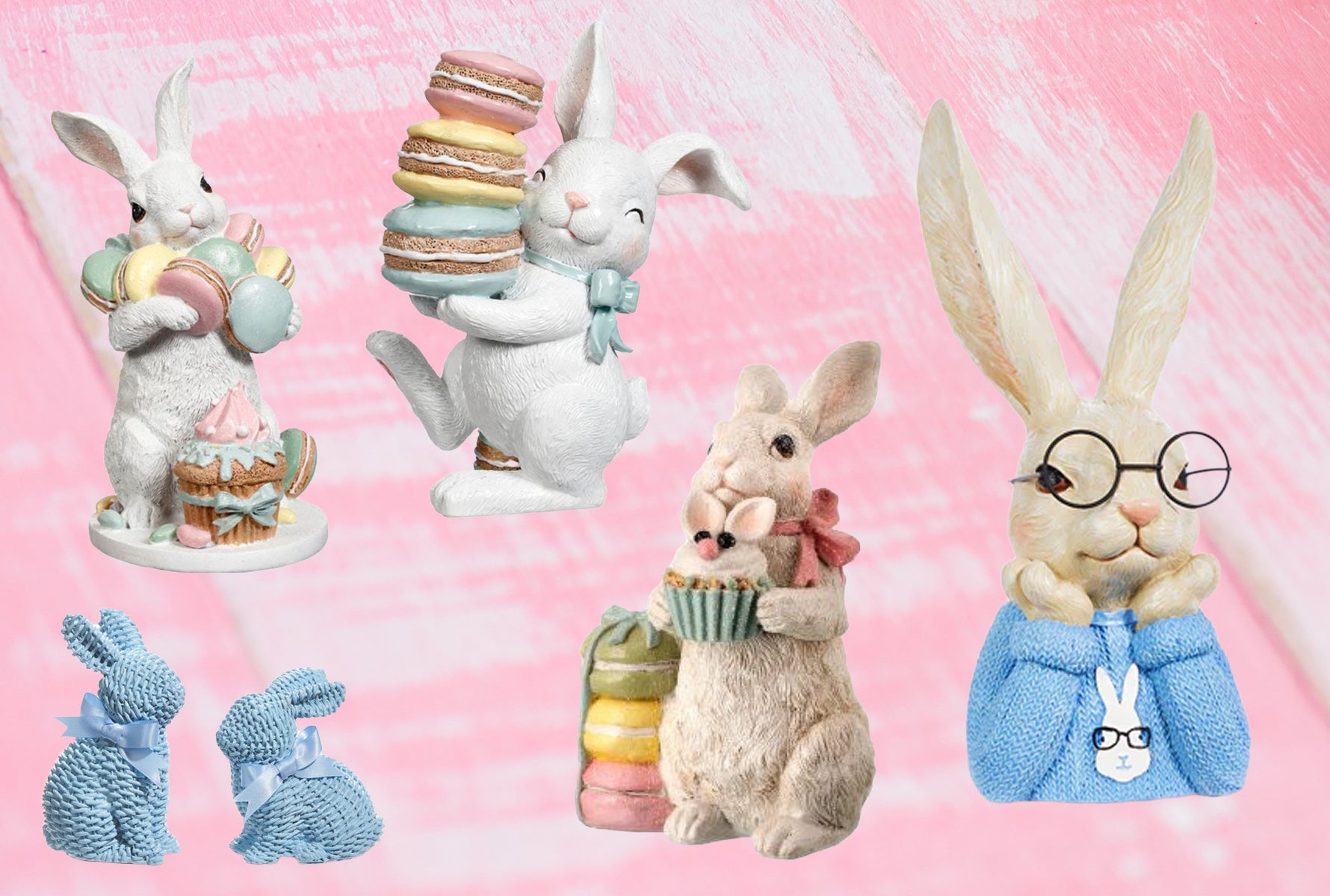 6" Easter Bunny with Treats Cupcake ice Cream Cookie Macaroon Figurine MT23704