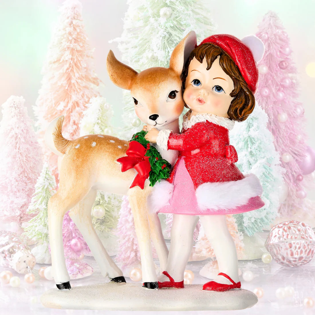 Retro Deer Ornament with Pink Shaw & Bow 79-81344