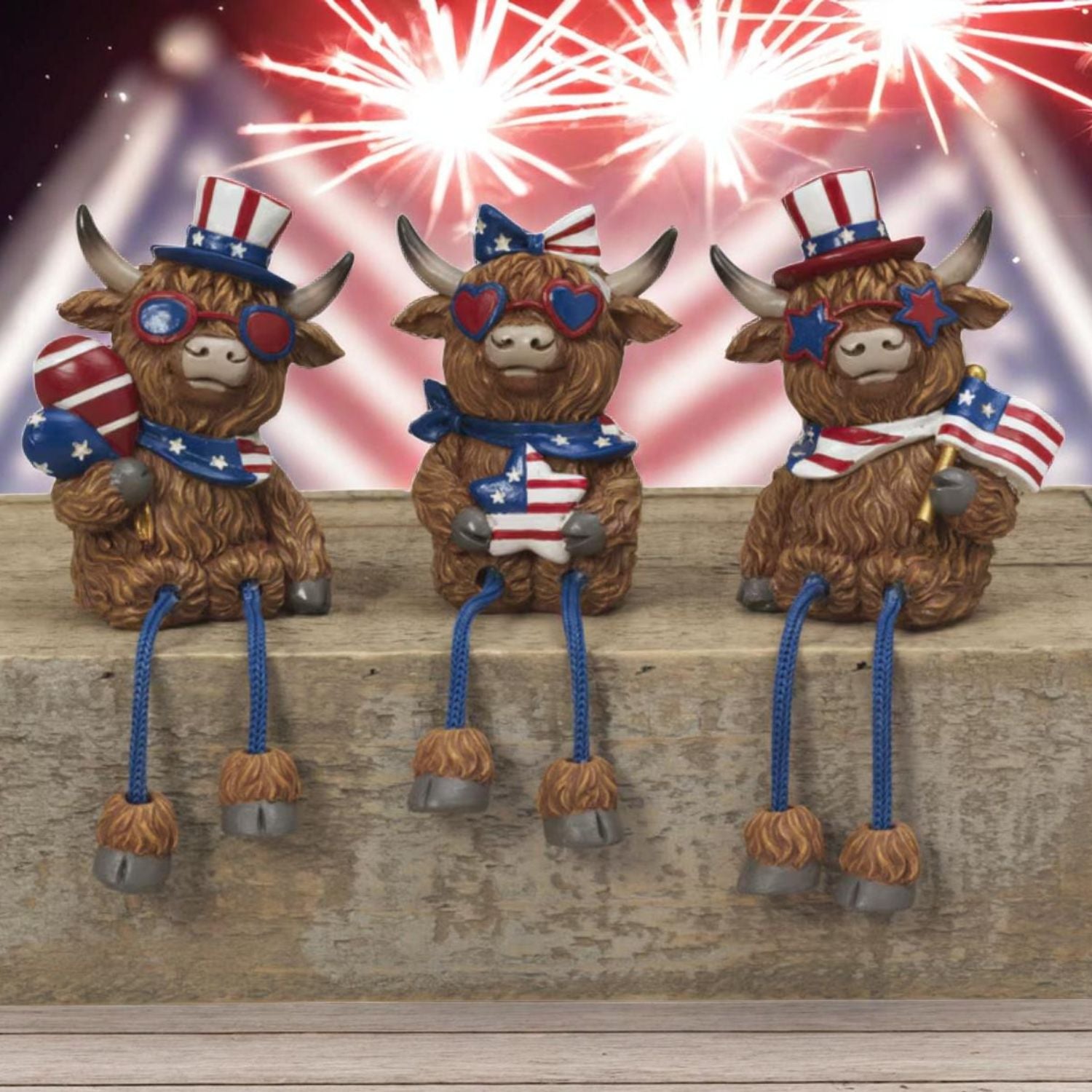 - Item Description: 3.94"H Resin Americana Highland Cow Shelf Sitter, 3 Asst