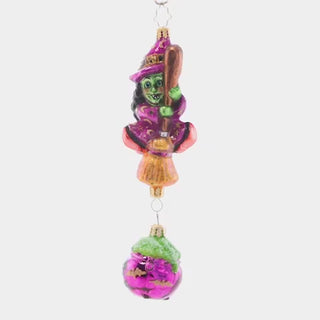 With broom and cauldron in hand, this witch is ready to bring Halloween throughout the land. She'll give you a trick or a treat – let's hope you get something sweet!