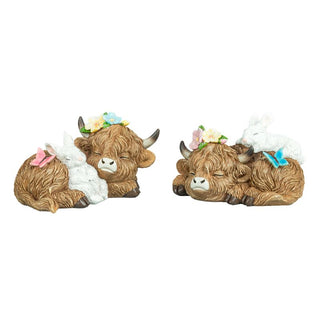 Pre-order Easter Resting Highland Cow and Playful Bunnies Set 66104