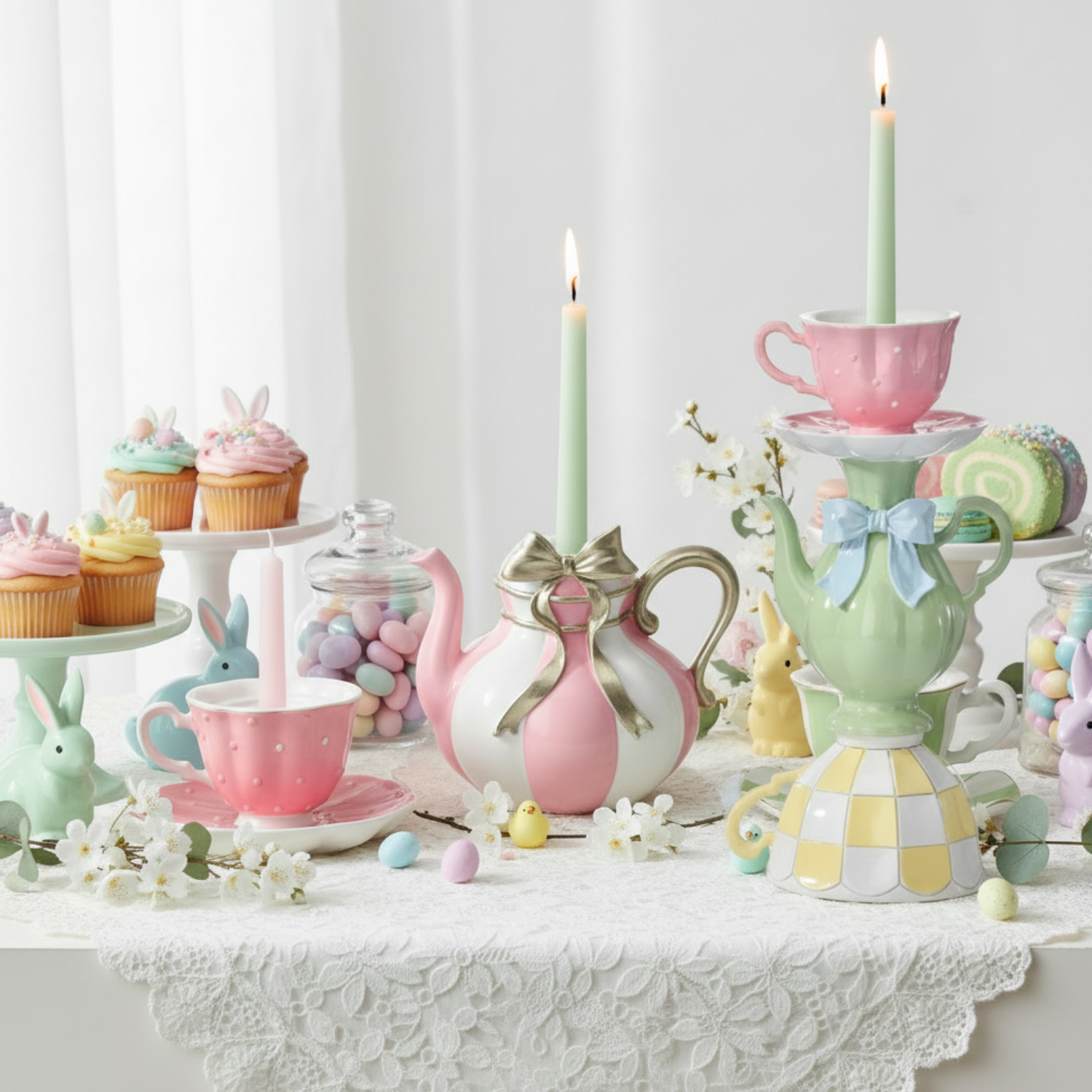Pre-Order Whimsical Teapot & Teacup Stacked Taper Candle Holder MT26651