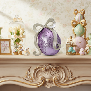 Pre-Order White Resin Egg with Purple Bow MT26824