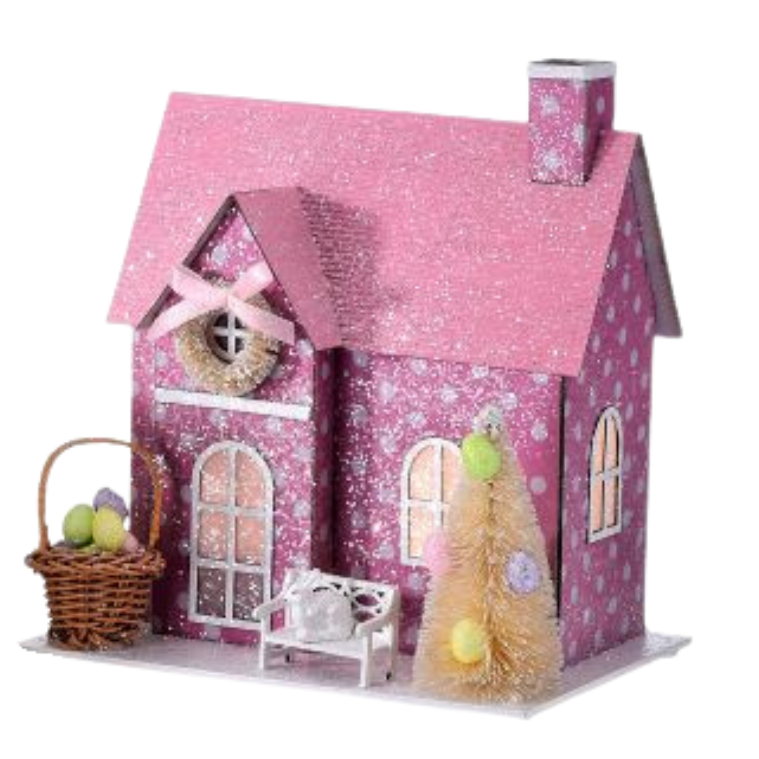 Pre-Order Pink Polka Dot Easter Paper House Battery LED Timer MT26975