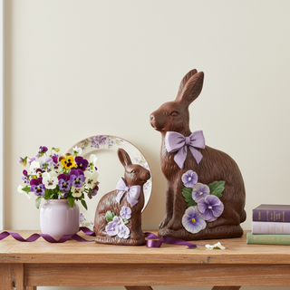 Pre-Order Chocolate Bunny Momma & Baby Set with Pansies MT26620