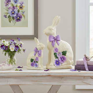 Pre-Order White Chocolate Bunny Momma & Baby Set with Pansies MT26620