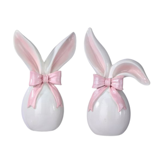 Pre-Order White Resin Egg with Bunny Ears and Bow Set MT26825