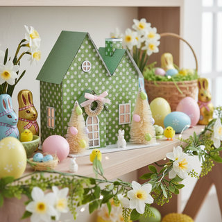 Pre-Order Green Polka Dot Easter Paper House Battery LED Timer MT26975