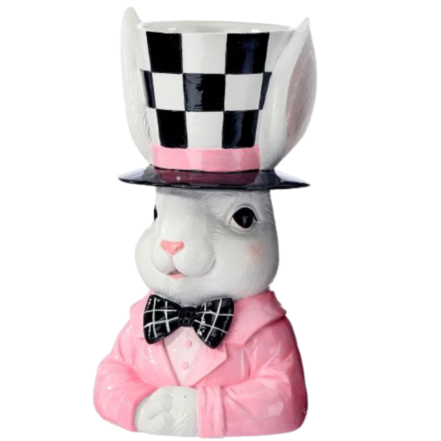 Pre-Order Whimsical Pink & Black Checked Boy Bunny Bust Planter MT26638