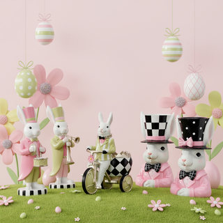 Pre-Order Black Checked Garden Boy & Girl Bunny on Tricycle Set MT26733