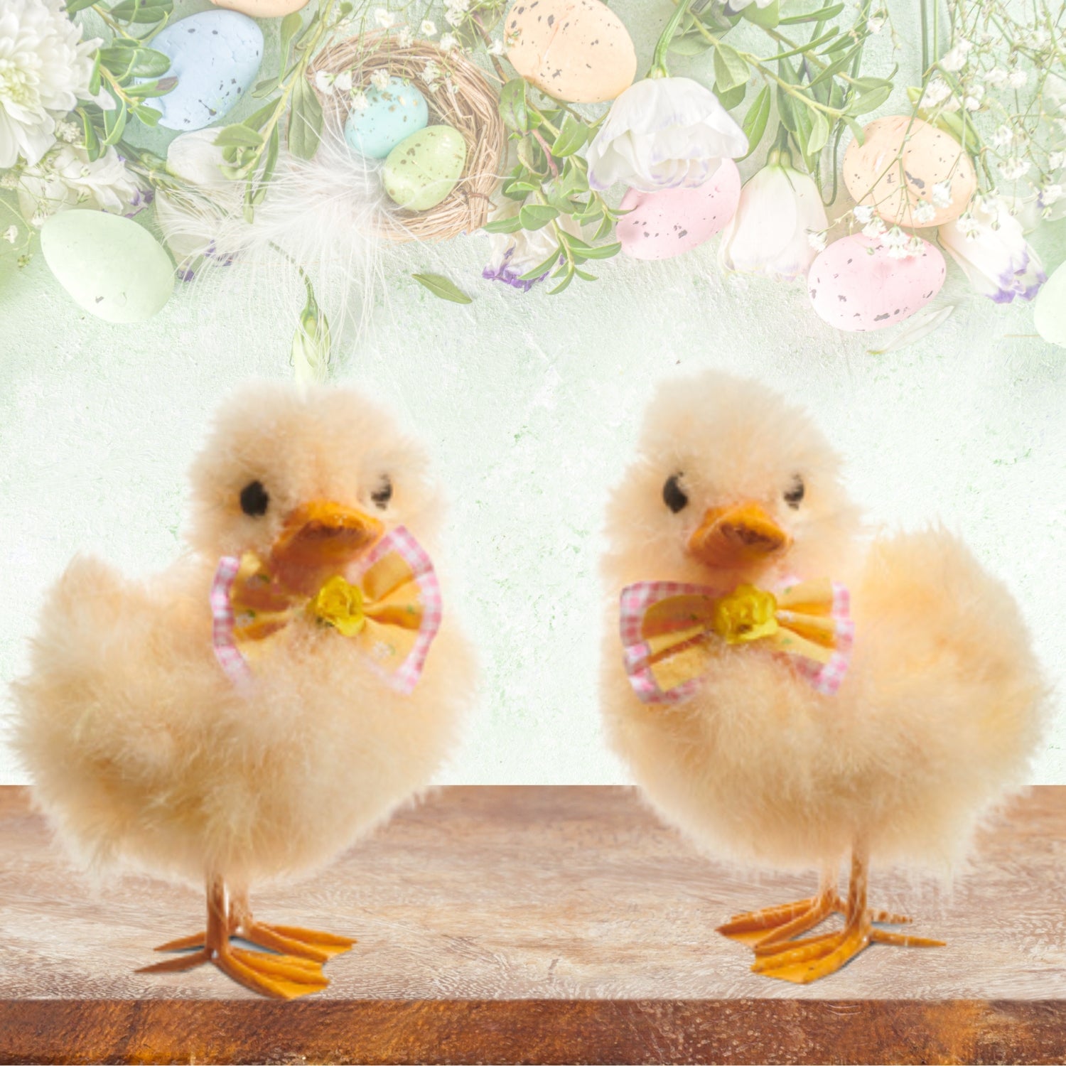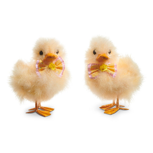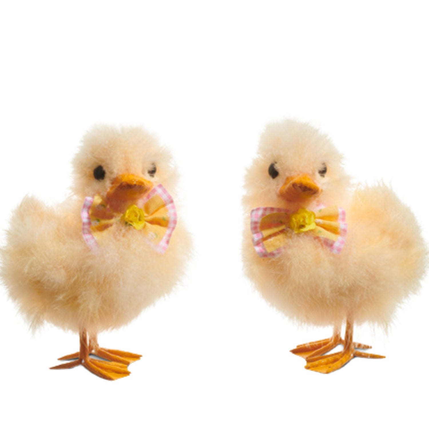 Raz Easter 8" Fluffy Yellow Ducks with Bow Set 4503440