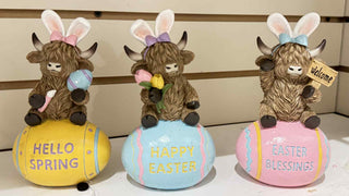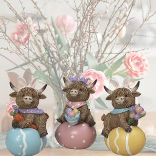 Pre-Order Spring 2026 Resin Easter Highland Cow on Easter Eggs Set