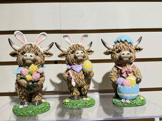 Pre-Order Spring 2026 Resin Easter Highland Cow Sitting on an Egg w/Bunny Ears Set