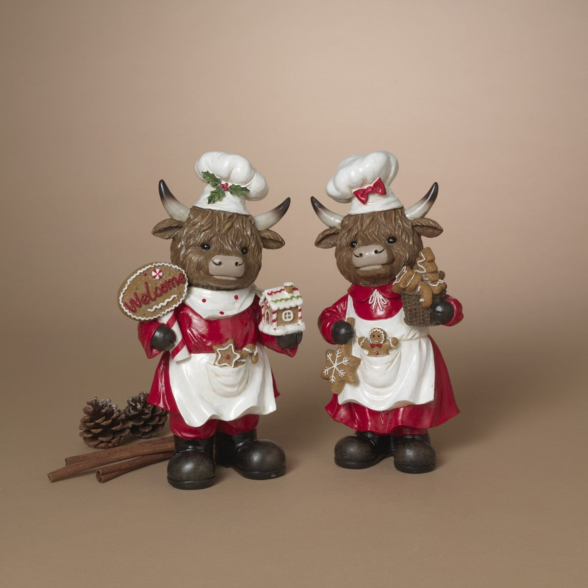 12.6" Resin Holiday Highland Cow Gingerbread Chef Set 2795350