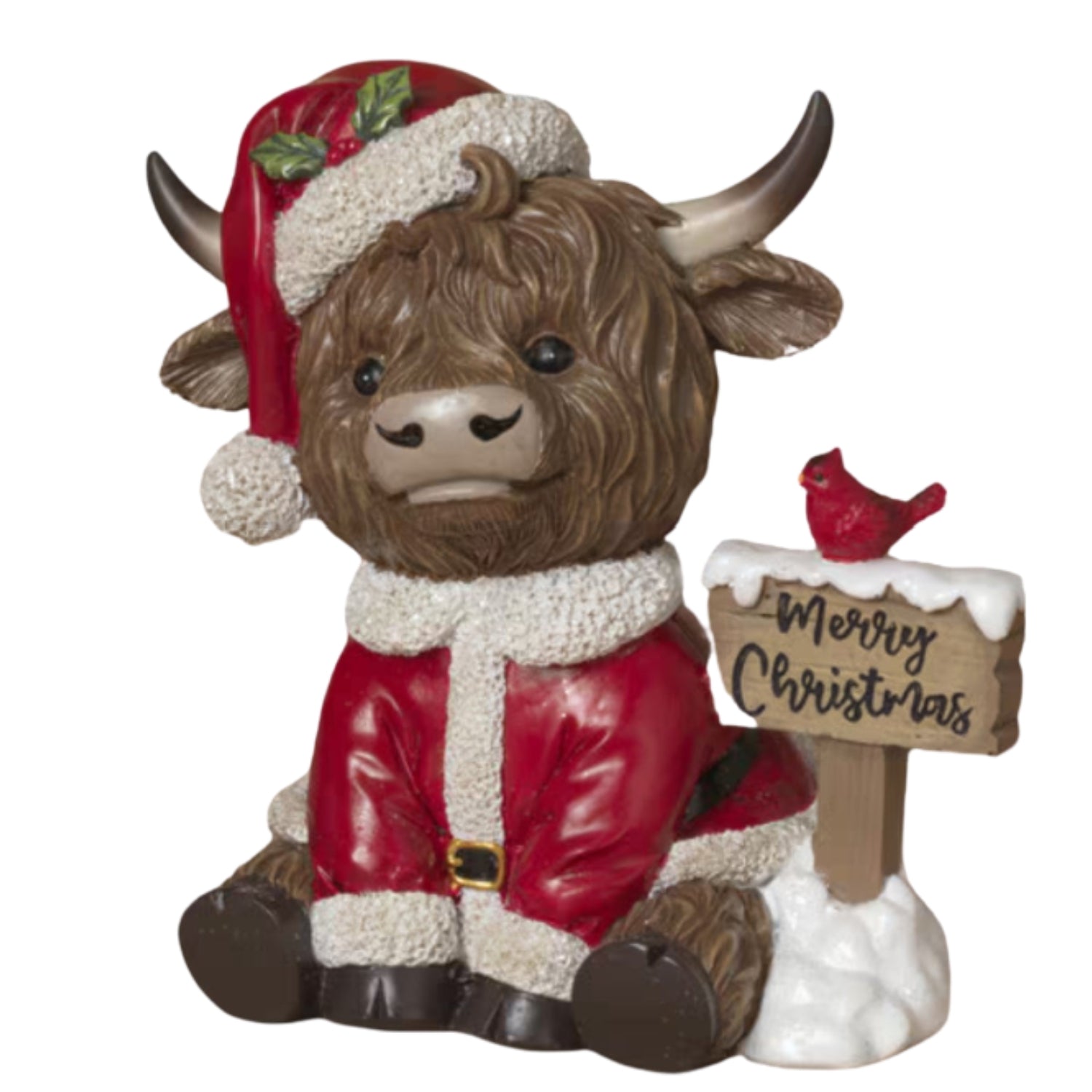 - Item Description: 7.2"H Resin Holiday Highland Cow, 2 Asst