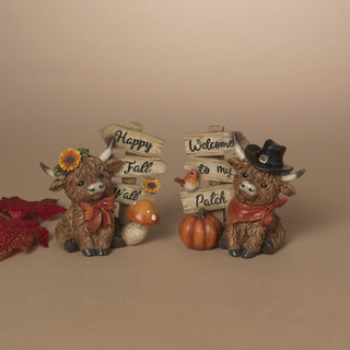 Large 9.25" Resin Harvest Highland Cow Figurine Set 2796980