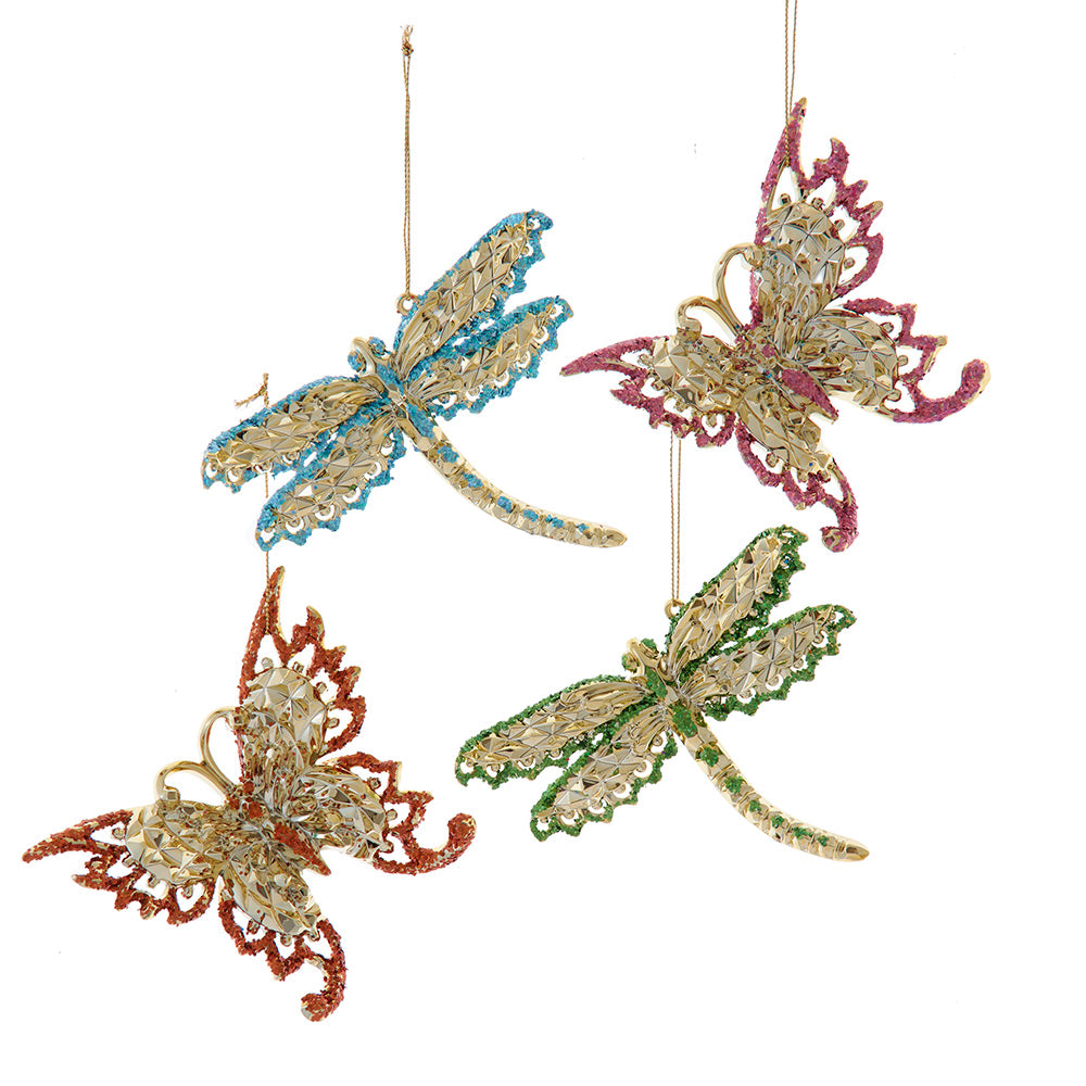 Elevate your holiday decor with Kurt Adler's stunning Gold Butterfly & Dragonfly Ornaments! This exquisite assortment features four intricately designed ornaments, showcasing the delicate beauty of butterflies and dragonflies in a shimmering gold finish. Each piece is unique, adding a touch of elegance and whimsy to your Christmas tree or seasonal displays. Crafted from high-quality materials, these ornaments reflect light beautifully, creating a warm and enchanting glow that enhances any festive setting. Their graceful designs make them perfect for adding a sophisticated flair to your holiday decor or for celebrating nature's wonders year-round.