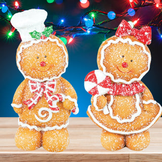 Candied Standing Gingerbread Chef Boy Red Bow Girl Set 15479