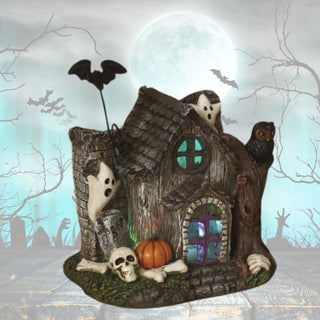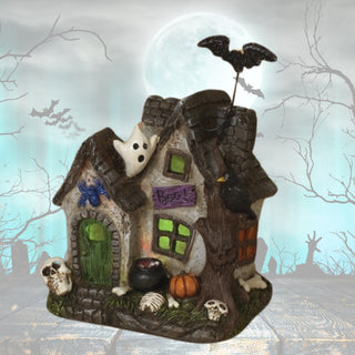 Ghost Bat Spooky Lighted Resin Haunted House with Green Door 2650340