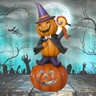 Lighted Folk Art Halloween Pumpkin w Lollipop on Pumpkin Figurine 2736840