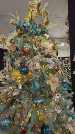 Teal & Gold Santa Wearing Teal Coat Ornaments Set E0934 Magical Woods
