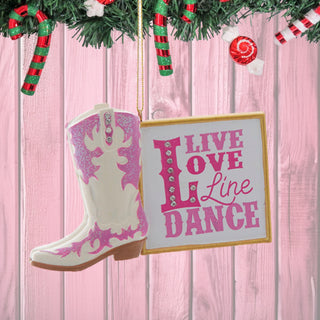 Pink Western Live Love Line Dance Cowgirl Boot Ornament D4692 Honky Tonk