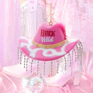 Pink Western Country Cowgirl Fringed Buck Wild Hat Ornament D4697 Honky Tonk