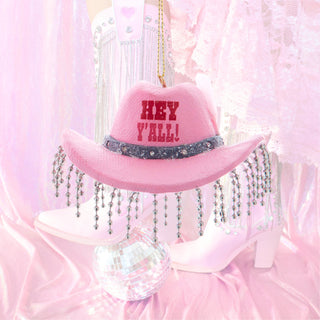 Pink Western Country Cowgirl Fringed Hey Ya'll Hat Ornament D4697 Honky Tonk