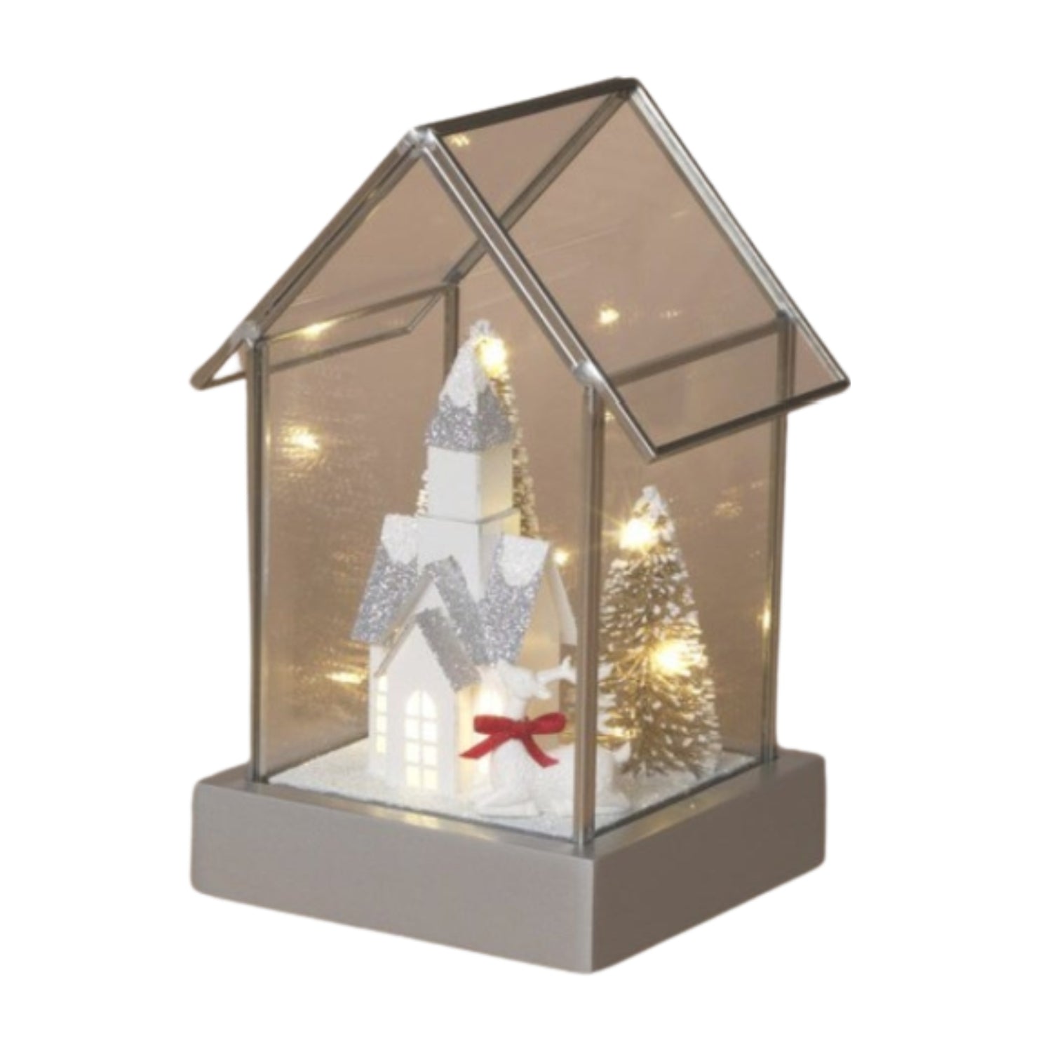 Lighted Holiday Glass House w/ Village Scene & Timer 2802020