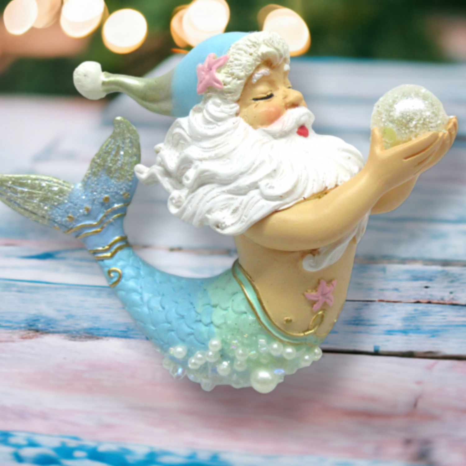From the house of December Diamonds, we bring you the Blue Santa Merman w/Pearl Orn. This unique ornament is a part of our non-traditional seasonal decor collection. Designed for those who prefer bold and unique accents in their homes, this ornament is sure to add a touch of whimsy to your festive decor. Celebrating our 24th year in the industry, we continue to offer exclusive pieces like this to excite and delight our valued customers.
