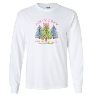 Soft Holly Jolly Christmas Club Front Print on Long Sleeve - White