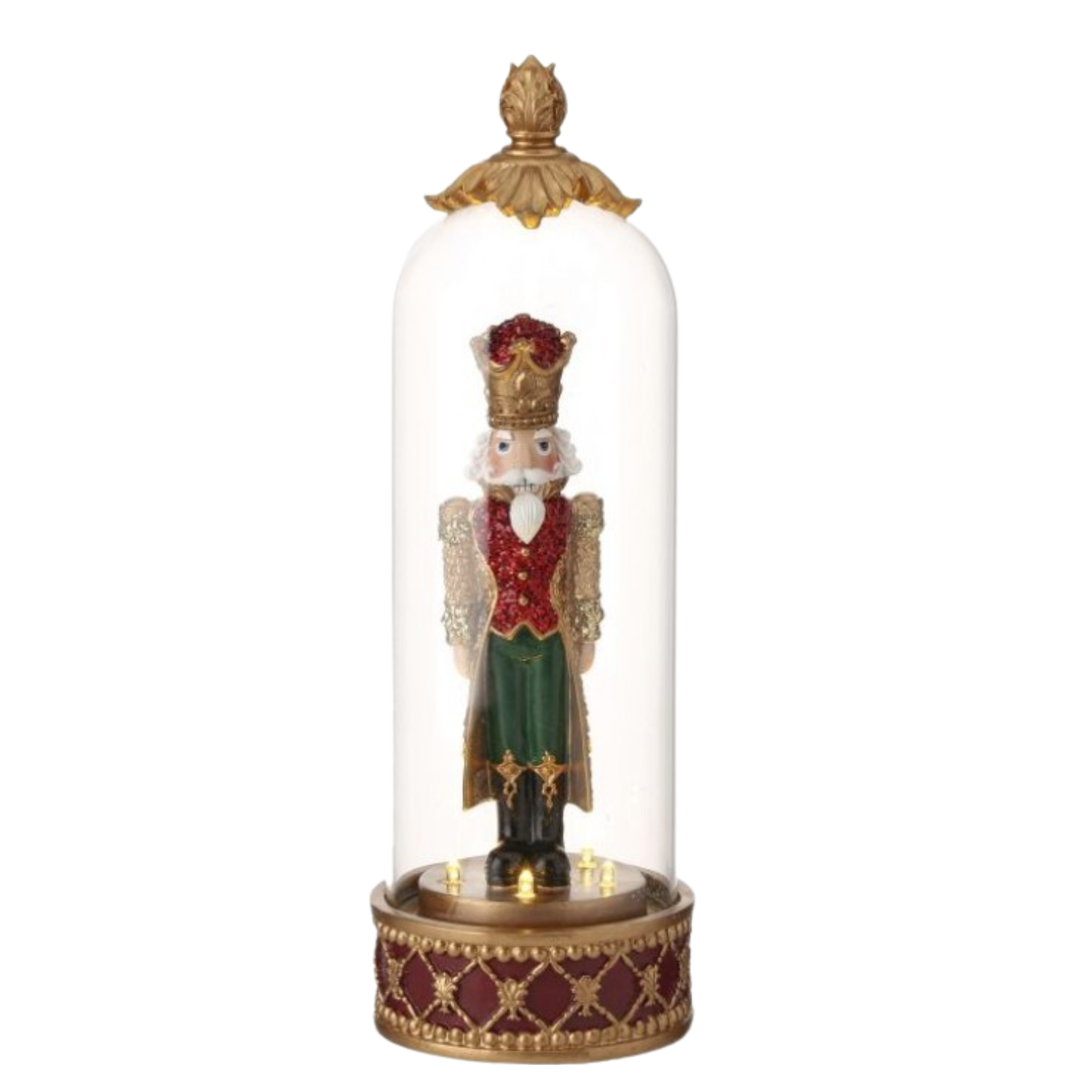 Red & Green Nutcracker Cloche MTX73352 LED BTRY Timer