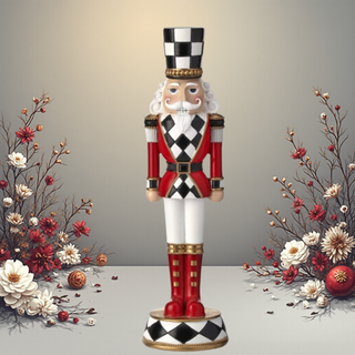 Black, White Checkered Nutcracker on Base MTX73310