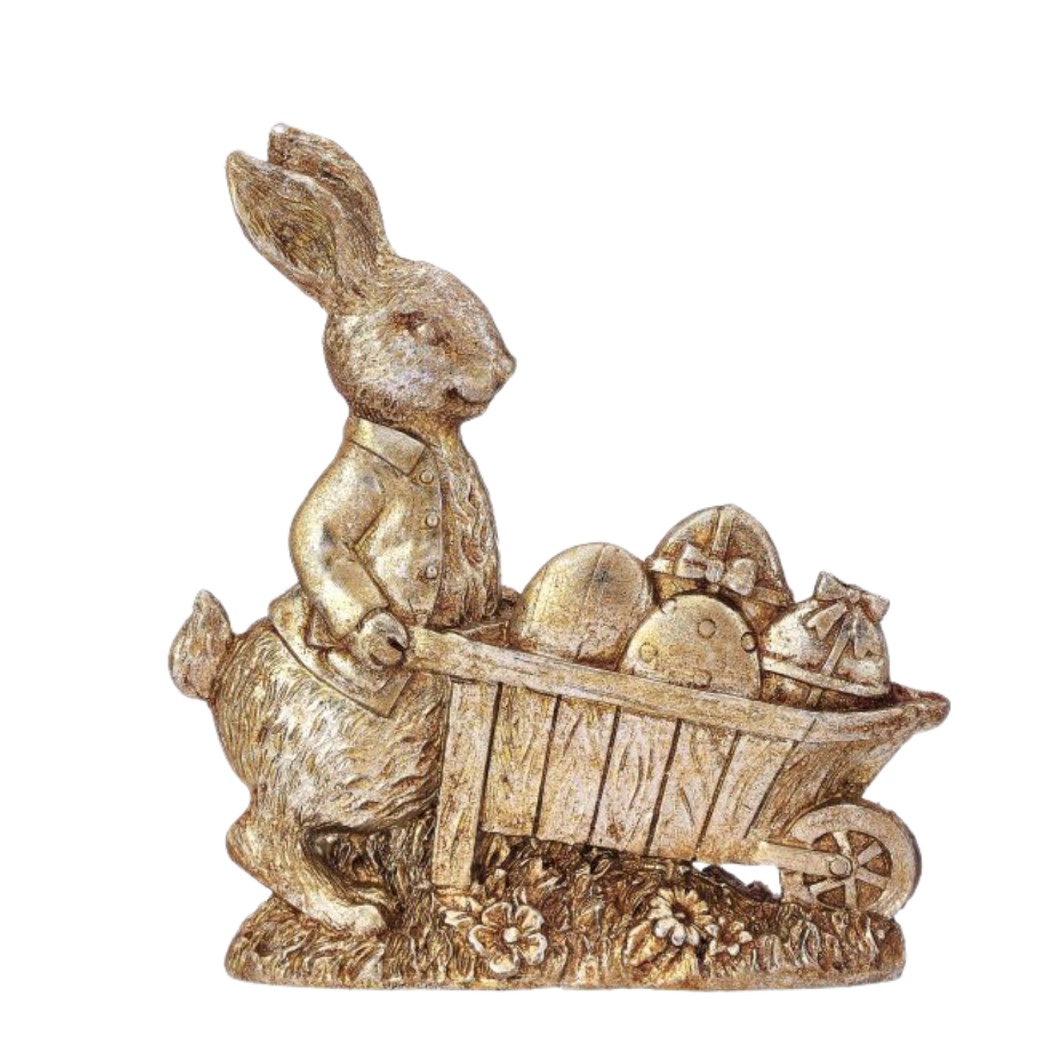 Antique Champaign Gold Bunny with Cart Figurine MT27056