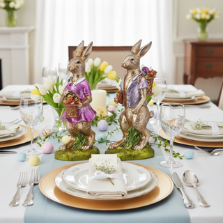 Pre-Order Pink Purple Resin Vintage Foil Boy Girl Bunny Set MT27057