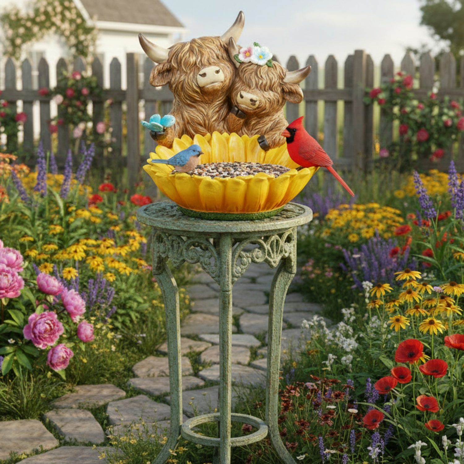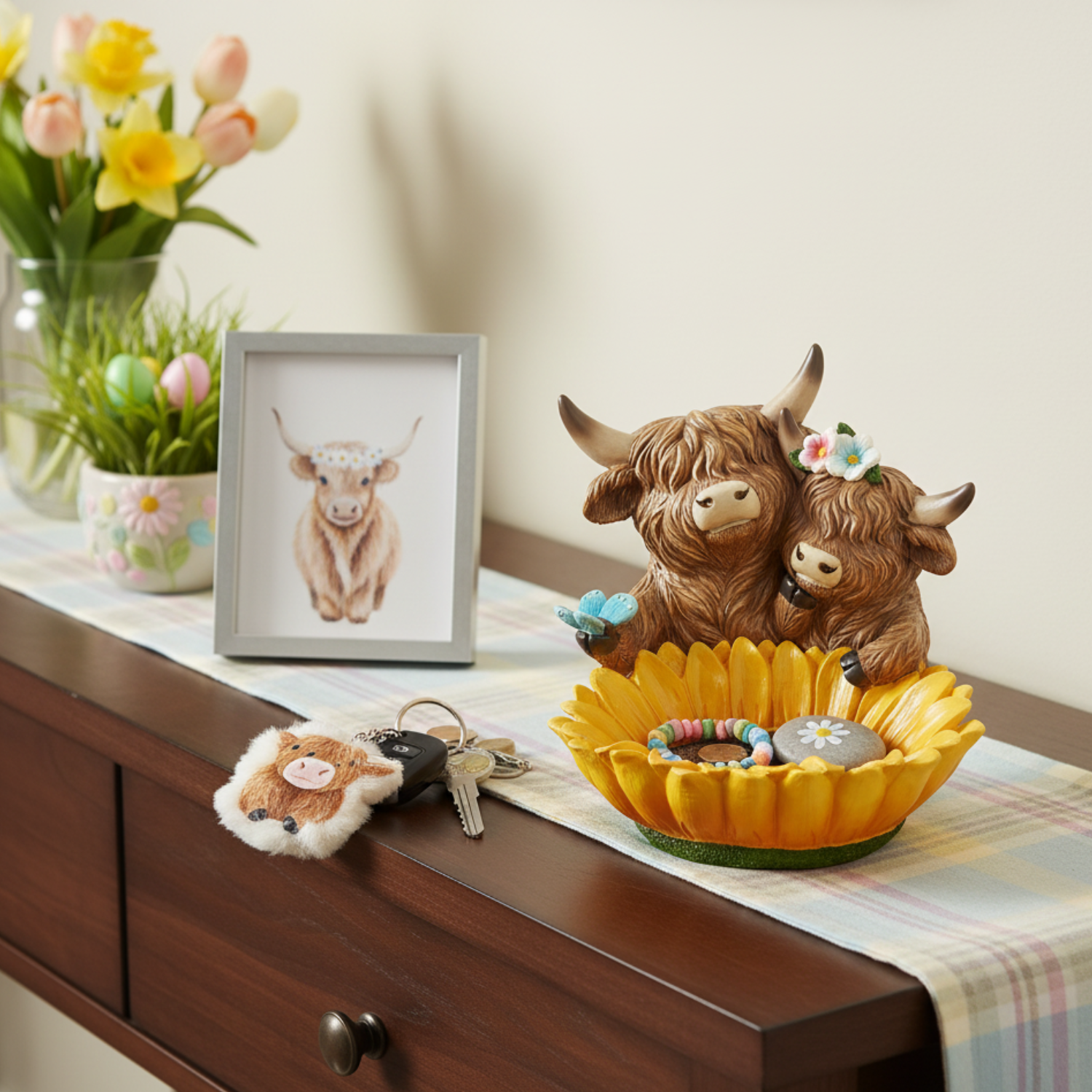 Highland Cow Sunflower Birdbath Trinket Dish 66202