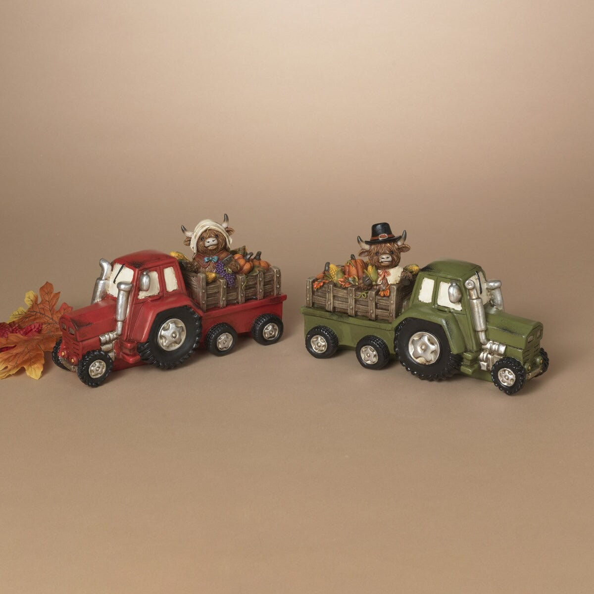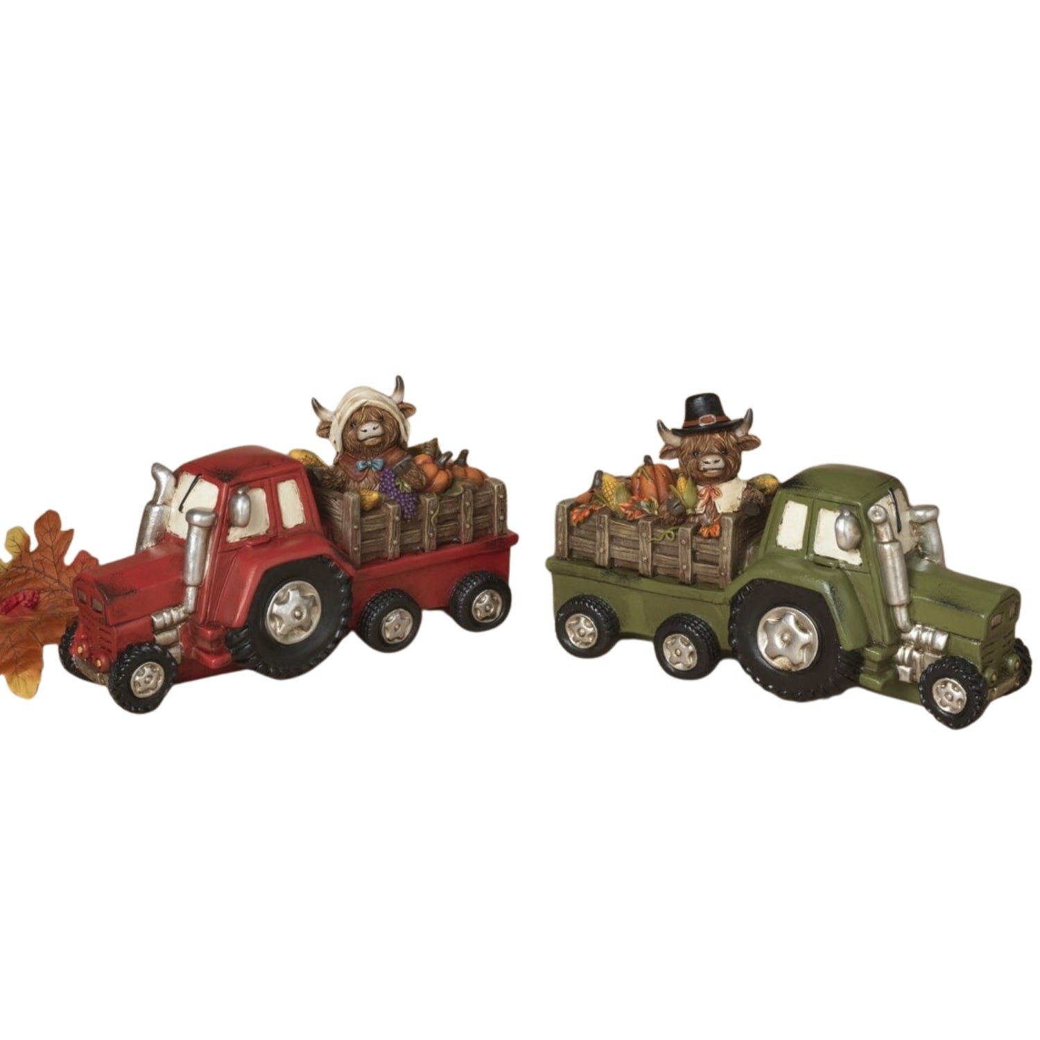 - Item Description: 10.2"L Resin Harvest Truck w/ Highland Cow, 2 Asst